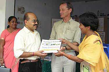 Responding to the Madhya Pradesh Governments’ keen interest in ecosan Paul Calvert and Veena M of ECOSOLUTIONS presented a copy of the book